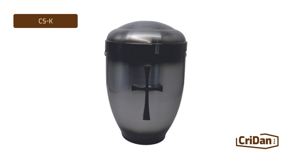 The urn is first removed from the press (cold drawing of metal) where it is shaped, then cleaned of oil and grease, sanded, painted and varnished with quality materials also used in the automotive industry. The urns are inspected the next day, polished if necessary, and high-quality brass decorations (crosses, flowers, hands, etc.) are placed.