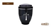 The urn is first removed from the press (cold drawing of metal) where it is shaped, then cleaned of oil and grease, sanded, painted and varnished with quality materials also used in the automotive industry. The urns are inspected the next day, polished if necessary, and high-quality brass decorations (crosses, flowers, hands, etc.) are placed.